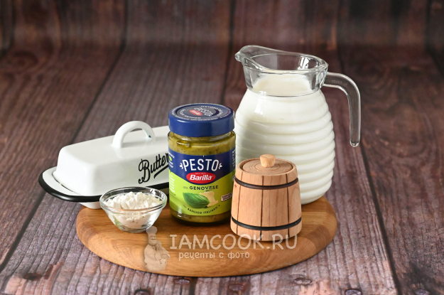 Соберите все необходимые продукты и начнём готовить сливочный соус с песто.