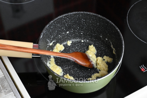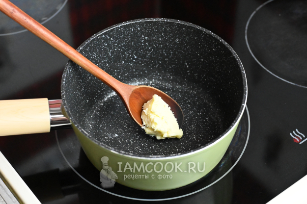 Итак, в кастрюльке с толстым дном растопите кусочек сливочного масла.