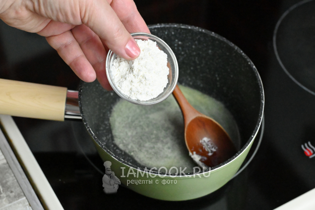 После чего всыпьте в масло муку.