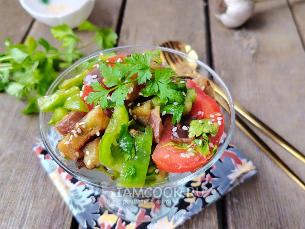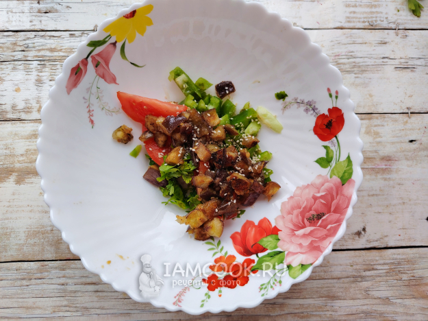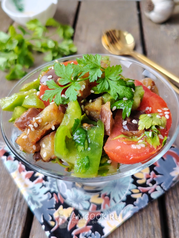 Теплый салат из баклажанов с томатами готов. Приятного аппетита!