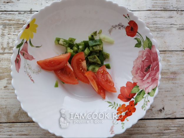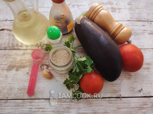 Собрать по списку продукты для салата из баклажанов с томатами.