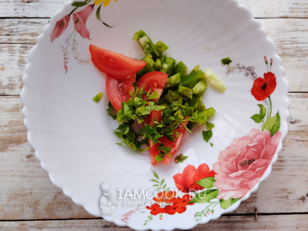 Соединить заготовки в салатнике, добавить рубленую зелень.