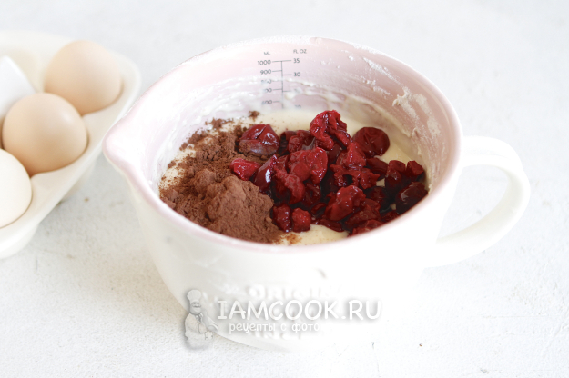 Добавьте какао (по желанию) и варенье. У меня варенье из шпанки.