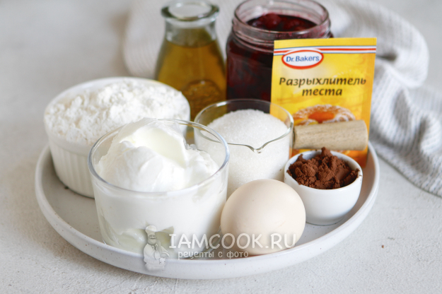 Продукты для приготовления кекса с вареньем на скорую руку - перед вами.