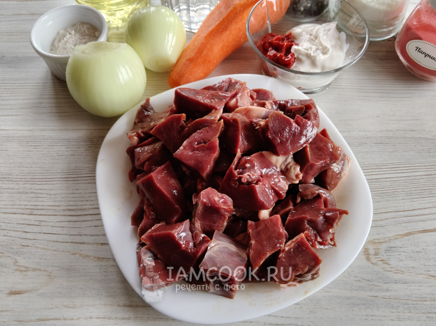Субпродукт тщательно промыть, удалить пленочки, если требуется. Нарезать некрупными кусочками.