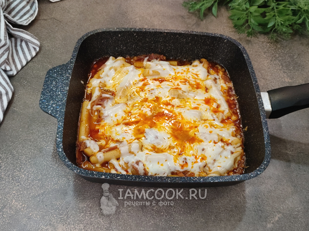 Посыпьте токпокки в соусе сыром, накройте крышкой, оставьте на небольшом огне до расплавления сыра (минут на 5-7).