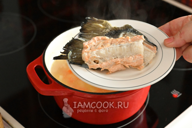 Для такого рода супов лучше всего использовать хвостовую часть рыбы: тут и косточка есть для навара, и мякоти достаточно, чтобы она красивыми кусочками смотрелась в супе.
