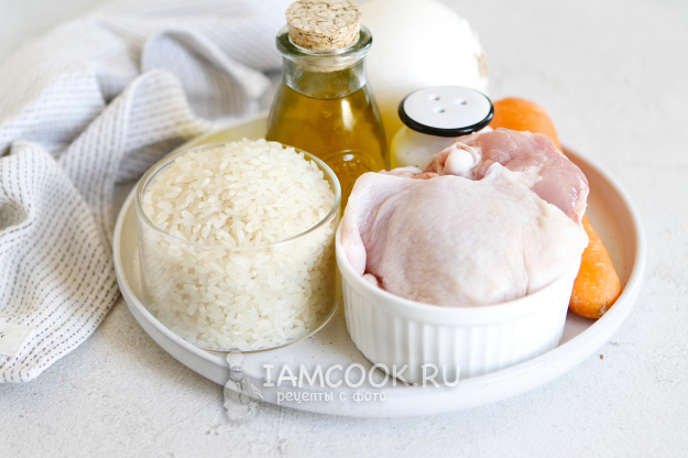 Соберите все продукты по списку и приступим к приготовлению плова с курицей для деток, как в детском саду.