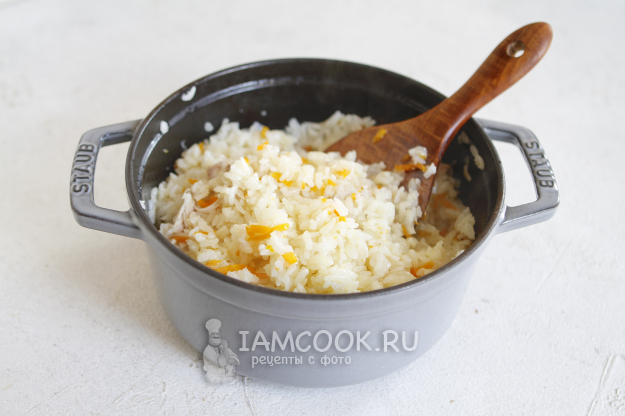 Выключите огонь и дайте отдохнуть плову, не открывая крышку 5-10 минут. Перемешайте.