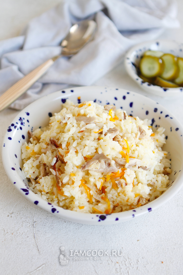 Разложите плов с курицей по тарелкам и приглашайте деток к столу.