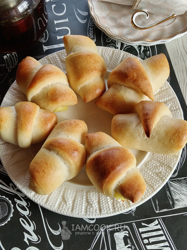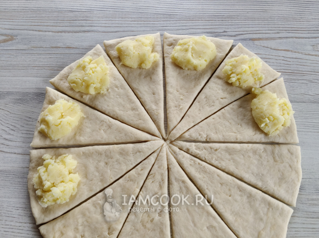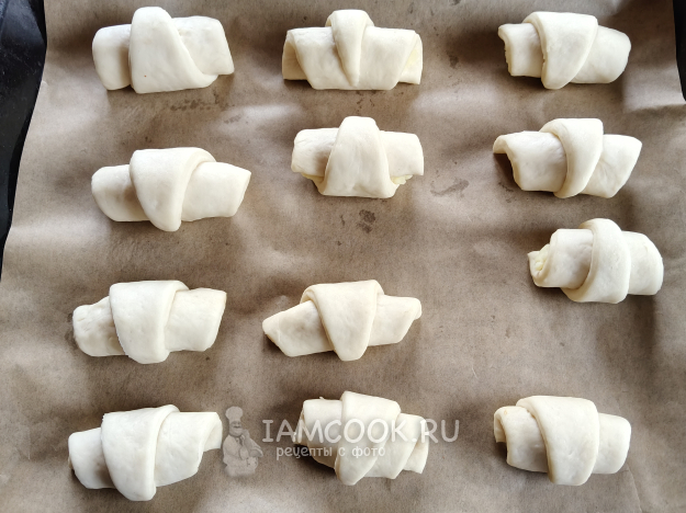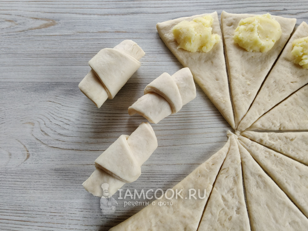 Рогалики с картошкой выпекать 15 минут при температуре 180 градусов.