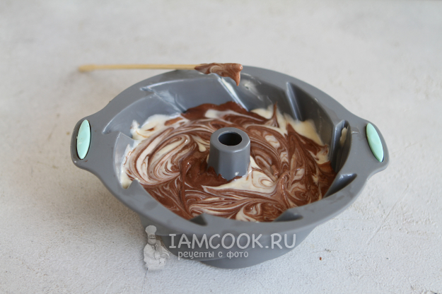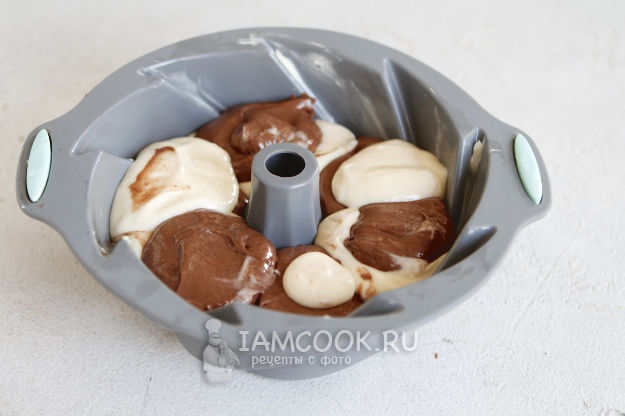 Чередуя, наполните форму тестом на 2/3 объёма.