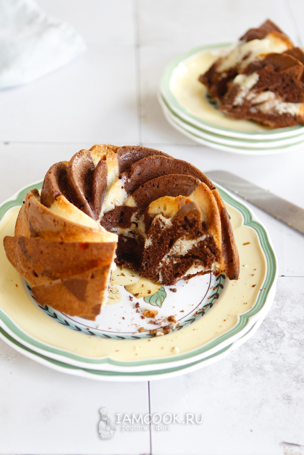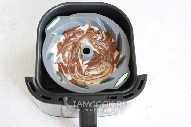 Выпекайте кекс «Зебра» в аэрогриле 30 минут при температуре 160 градусов. Выше поднимать не рекомендую, верхушка быстро подгорит, а внутри кекс может быть влажным.
