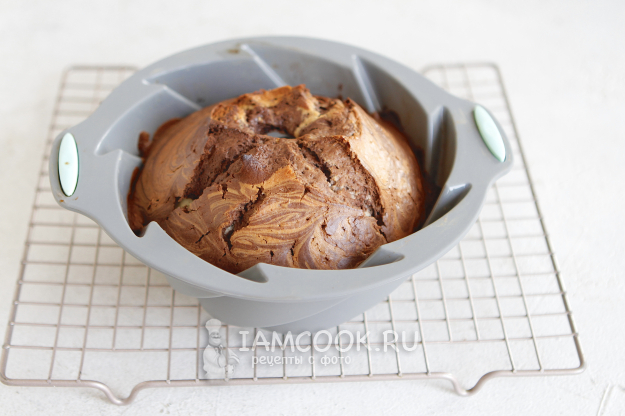 Дайте кексу немного остыть в форме, затем аккуратно его выньте.