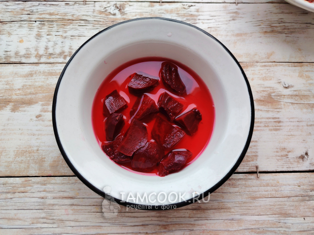 Свеклу почистить, натереть на терке или нарезать мелко. Поставить на плиту вариться, влив в посуду воду, свекла должна стать мягкой. Свеклу можно также запечь в фольге в духовке.