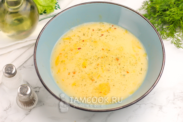 Вбейте куриные яйца в глубокую емкость: миску или салатник, влейте молоко и всыпьте приправу. Взбейте все вилкой или венчиком. Если хотите приготовить сладкие тосты, то вместо приправы всыпьте 1 ст.л. сахарного песка.