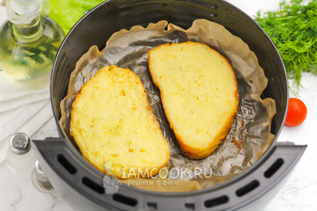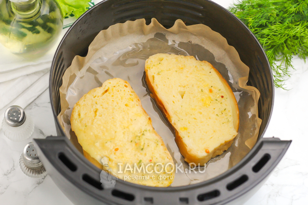 Аккуратно переверните с помощью силиконовой лопатки на другую сторону и запекайте тосты в аэрогриле такое же количество времени.