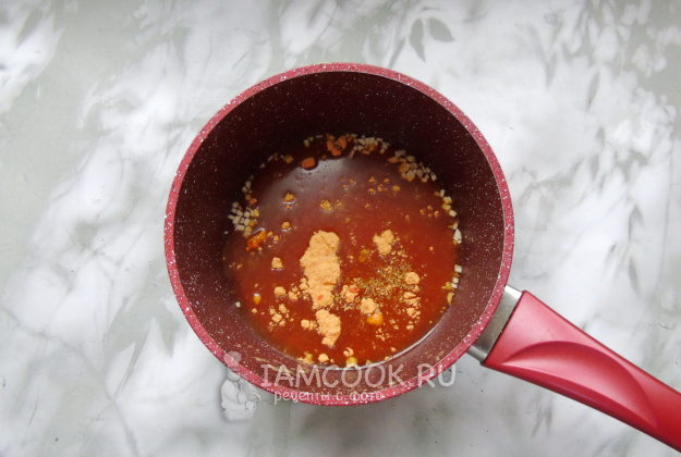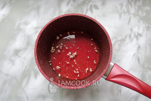 В кастрюлю налейте воду и добавьте измельченный чеснок.