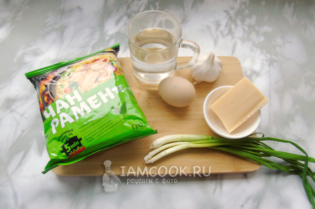 Соберите ингредиенты для приготовления рамена с сырым яйцом.