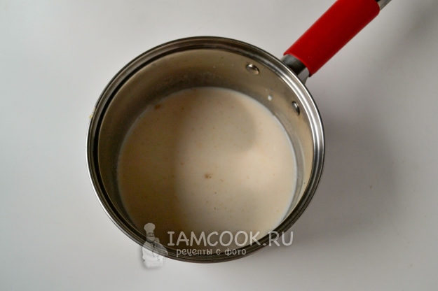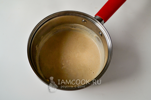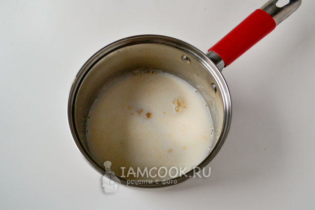 Перемешайте толокно в жидкости и поставьте сотейник на огонь.