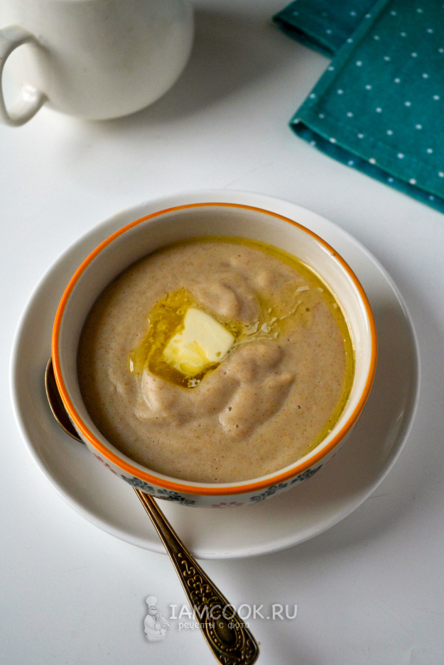 Каша из овсяного толокна готова. Подавайте ее горячей, добавив кусочек сливочного масла.