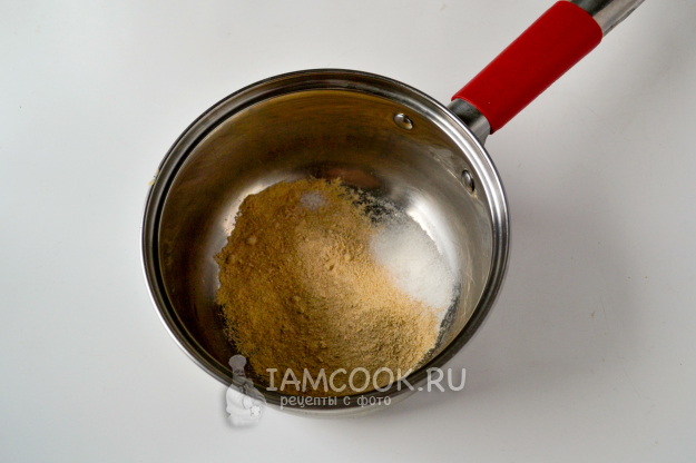 В сотейник насыпьте овсяное толокно. Добавьте соль и сахар по вкусу.