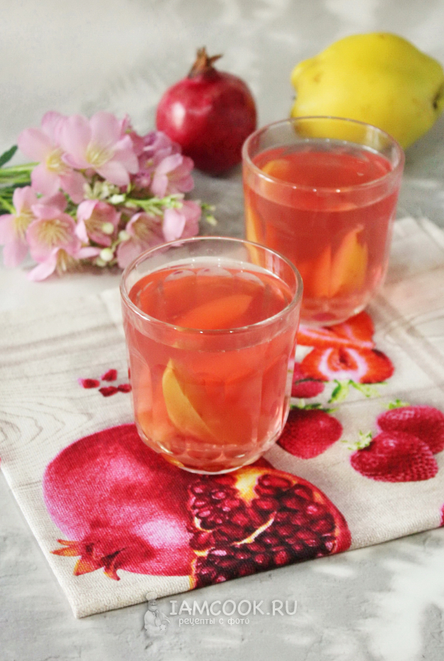 Ароматный, полезный и вкусный компот из айвы и граната готов.