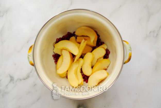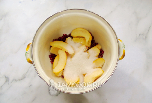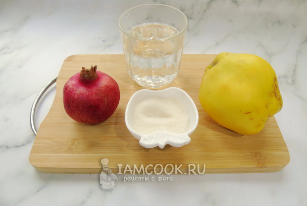 Соберите ингредиенты для приготовления компота из айвы и граната.