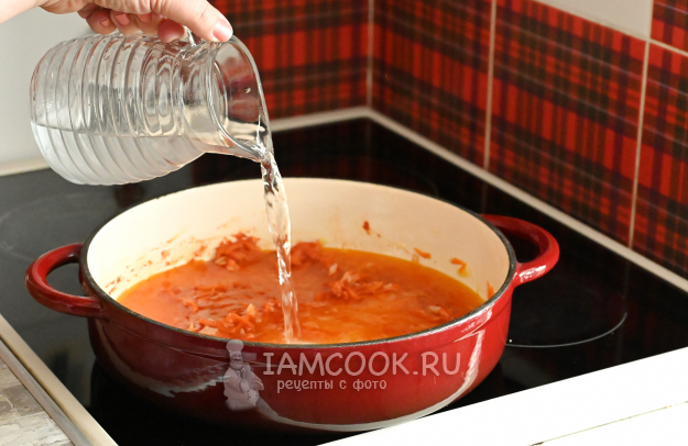 После чего влейте воду (количество зависит от того, сколько соуса вы любите).