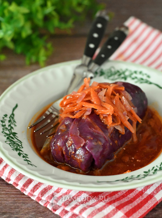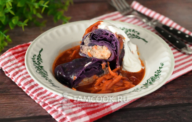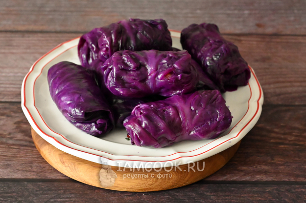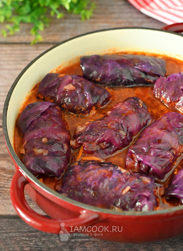 Голубцы из краснокочанной капусты готовы. Не терпится их попробовать!