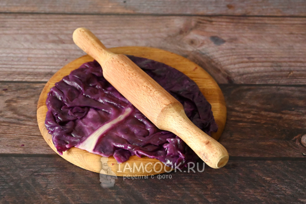 С листа капусты срежьте утолщение и прокатайте его слегка скалкой. Это мой фирменный способ, как сделать лист капусты помягче.