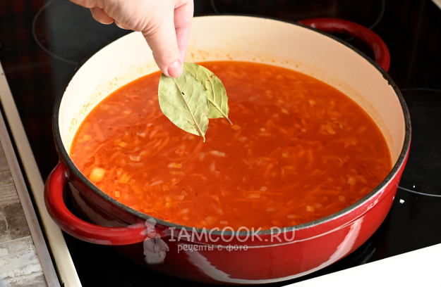 Чуть подсолите соус и добавьте любые специи (я ограничусь лаврушкой). Если томат сильно кислый, то можно в соус добавить немного сахара.