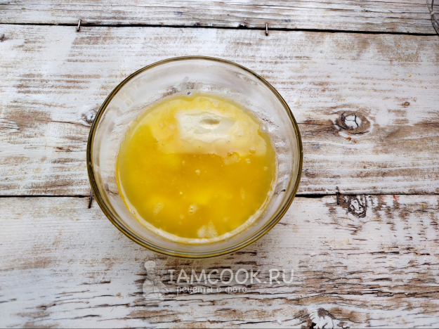Сливочное масло растопить на водяной бане или в микроволновой печи.
