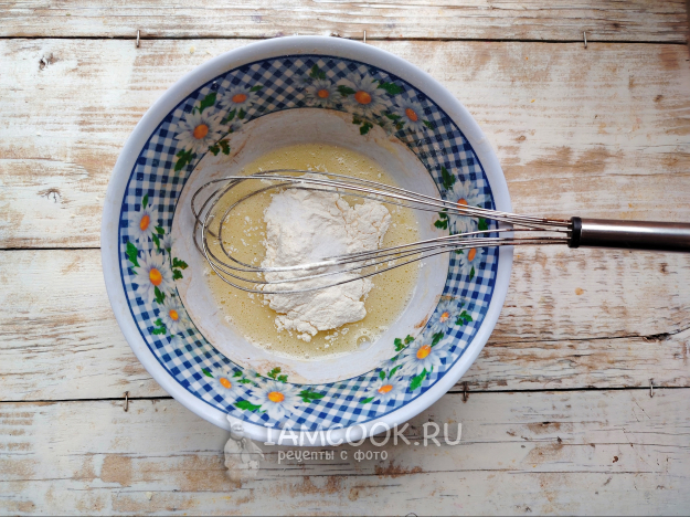 Частями всыпать просеянную муку, соединенную с разрыхлителем.