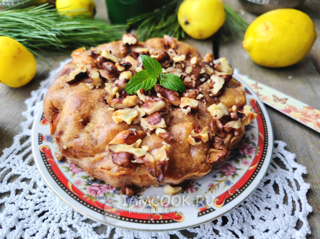 Готовый мокрый яблочный пирог подать к столу с чаем, кофе или молоком. Приятного аппетита!