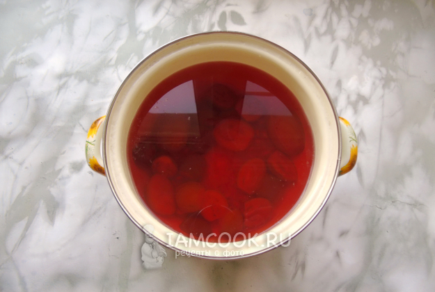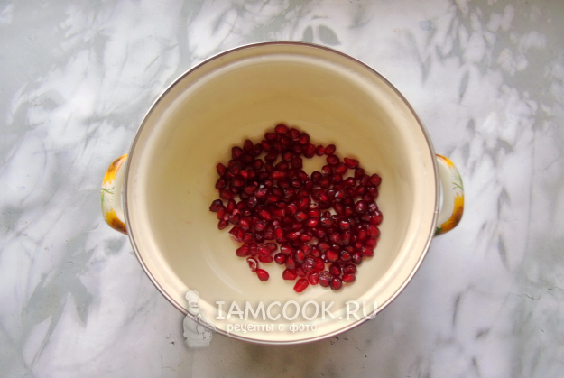 Гранат помойте, разрежьте, извлеките зерна и выложите их в кастрюлю.