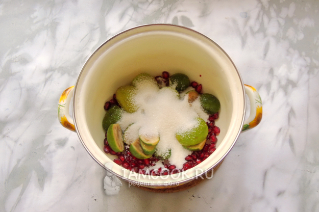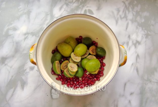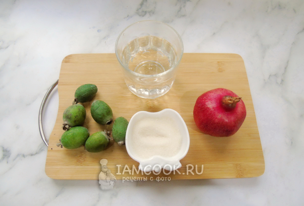 Соберите ингредиенты для приготовления компота из фейхоа и граната.
