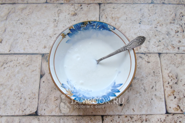 Приготовьте соус. В мисочке смешайте сметану, крахмал, соль и воду.