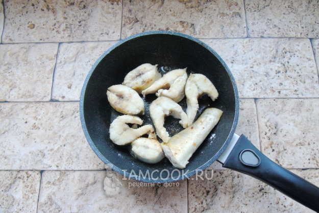 Судака очистите, выпотрошите, обрежьте плавники и голову. Хорошо помойте внутри и снаружи. Нарежьте кусочками, посолите и обваляйте в муке. Слегка обжарьте на сливочном масле.