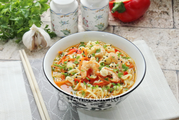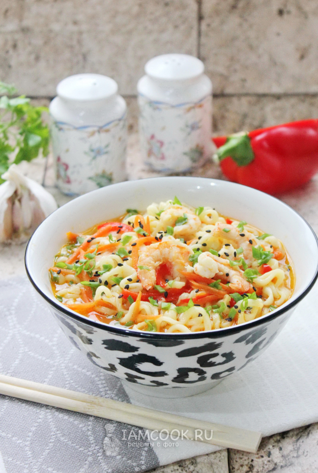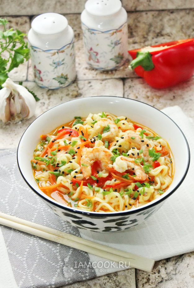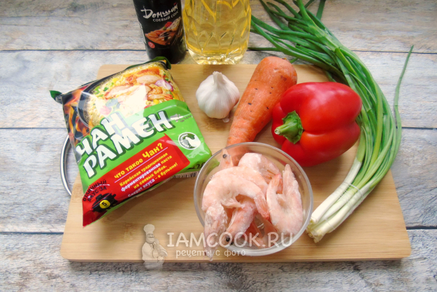 Все ингредиенты для приготовления рамена с креветками - перед вами, на фото.