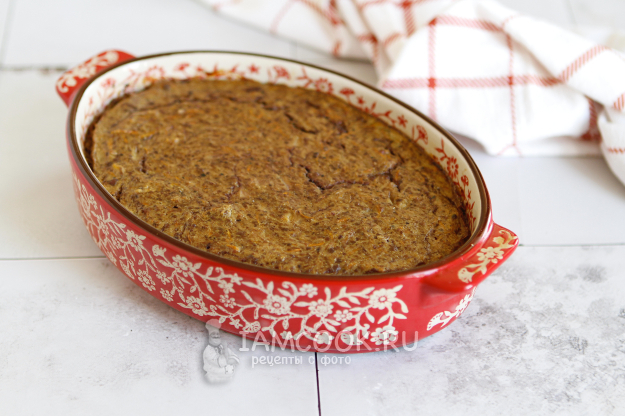 Подавать печеночную запеканку лучше в холодном виде. Дайте ей полностью остыть, тогда вы без труда сможете нарезать ее на порционные кусочки.