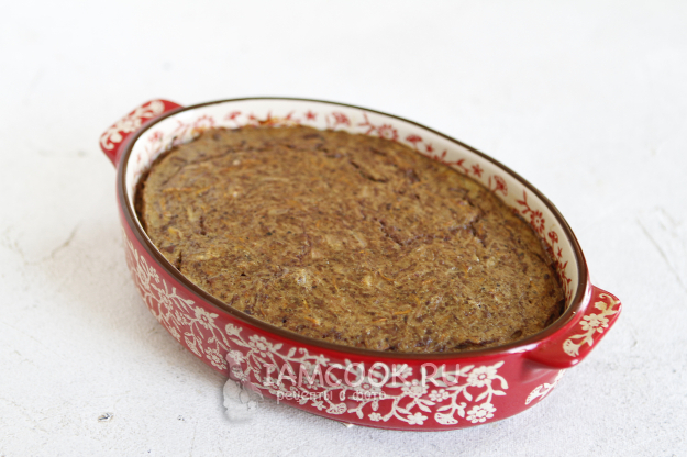Важно: готовим печеночную запеканку в аэрогриле при температуре 150 градусов 30 минут. Выше температуру не поднимаем, иначе верх запеканки сильно подгорит и запеканка получится суховатой внутри.