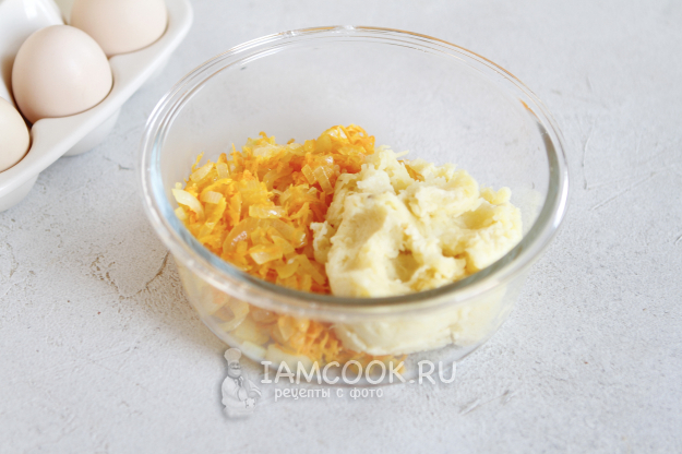 На просторах интернета очень много разных вариантов запеканки из куриной печени. Добавляют манку, муку, различные овощи. Я не стала утяжелять рецепт сыпучими продуктами. Мне хотелось приготовить максимально полезную запеканку с небольшим КБЖУ, поэтому добавила овощи. Картофель у меня уже был отварной, остальные овощи, морковь и лук репчатый, слегка припустила на растительном масле.