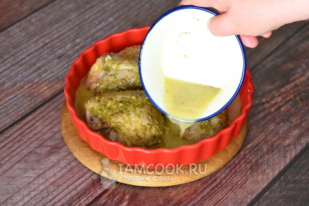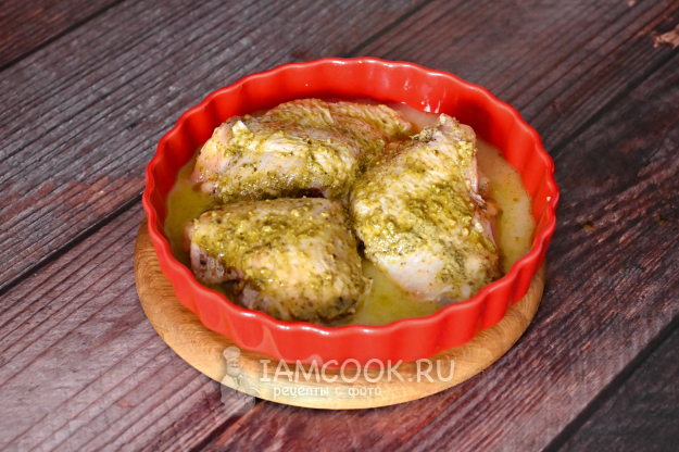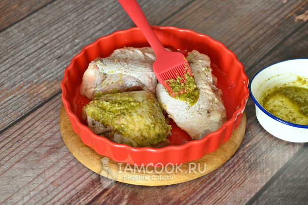 И кисточкой смажьте бедрышки этой смесью сверху.
