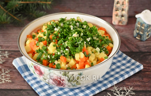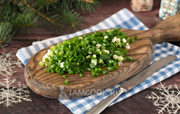 И ещё наш фирменный семейный ингредиент, который мы добавляли в "Зимний" салат - это зелёный лук.