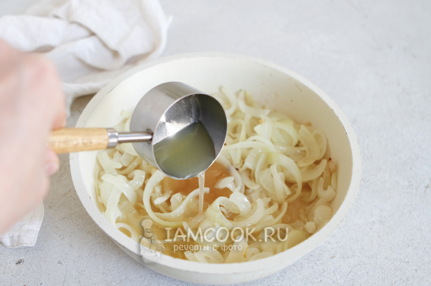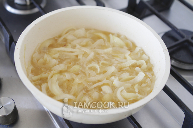 Обжаривайте лук до полупрозрачности и мягкости. Лук не должен подгореть, поэтому жарим на небольшом огне, регулярно помешивая.