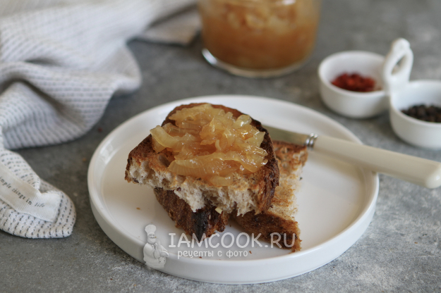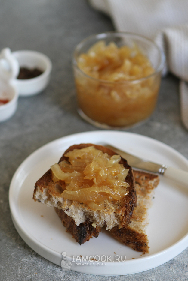 Время указываю приблизительное. Тушите луковый конфитюр с медом до карамельного цвета.