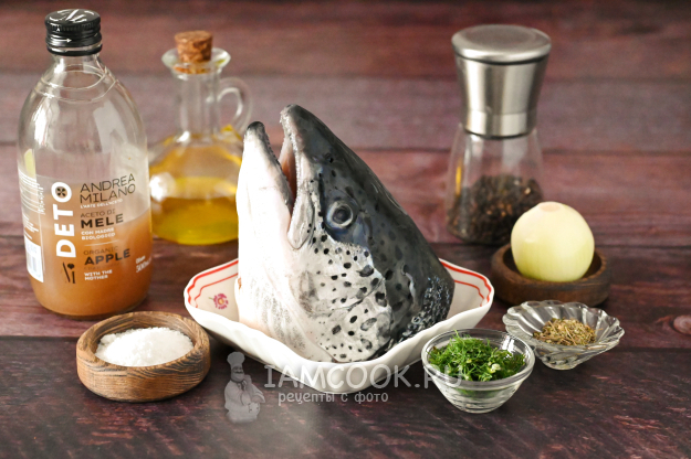 Подготовьте необходимые продукты для запекания головы семги в духовке.