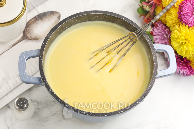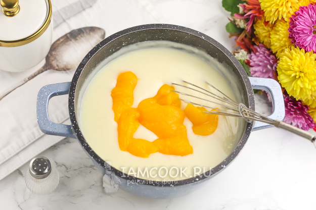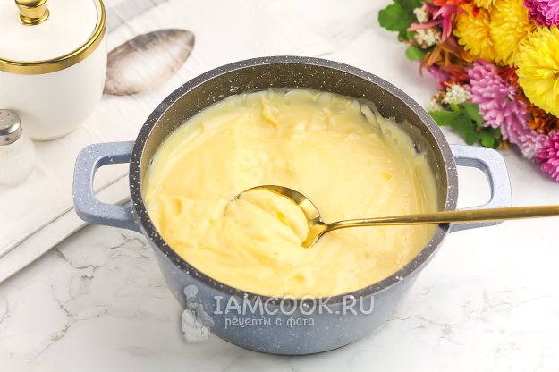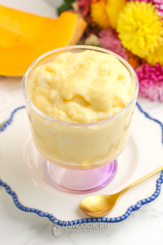 Остывший тыквенный заварной крем приобретает гладкую структуру.