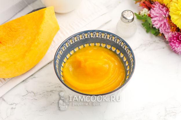 Пюрируйте 1-2 минуты погружным блендером. Если тыква не сочная, то влейте 1-2 ст.л. воды. Поместите в холодильник.